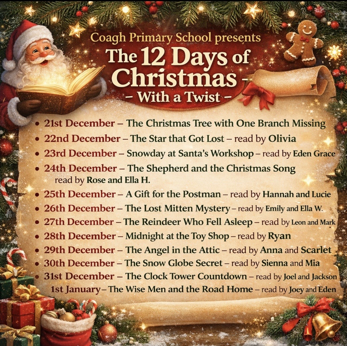 Our P7 pupils are bringing something special to your festive season! Starting on 21st December, they will be sharing 12 wonderful stories – one for each day – for you to enjoy at home.